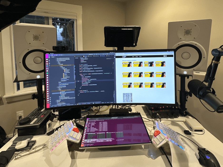 Two color-accurate ASUS ProArt displays give me the screen real estate I need while maintaining excellent color accuracy for design work and video editing.